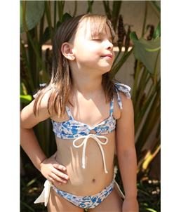 Um biquíni confortável que possibilita a liberdade de movimentos para a menina garantir a sua diversão.